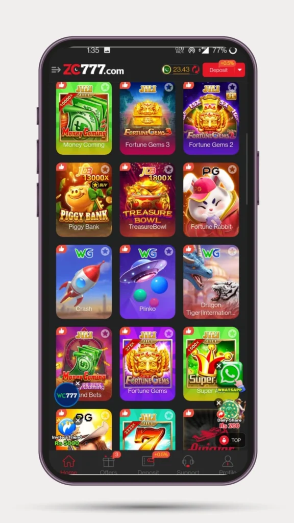However, it is important to remember that ZC777 is a luck-based platform. You can earn money, but you can also lose. Always play responsibly and avoid big investments.