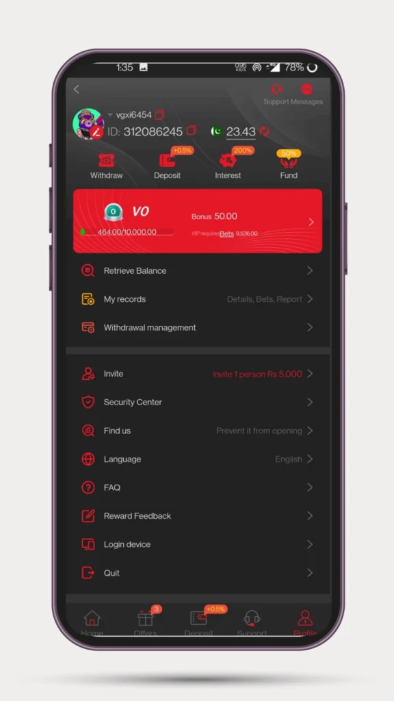 Every win, bonus, or task reward is added immediately to the wallet, which helps users keep track of their earnings.