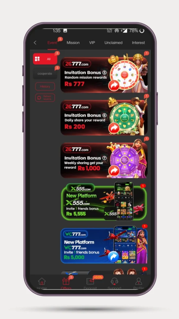 ZC777 Game Pakistan offers different mini-games and prediction activities that give users a chance to earn small amounts instantly.