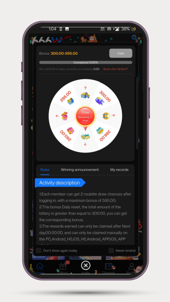 The 666W Game APK brings fun, excitement, and cash rewards together. Every game offers unique chances to win chips and earn real money. The app keeps players entertained with daily bonuses, VIP levels, and advanced earning features.