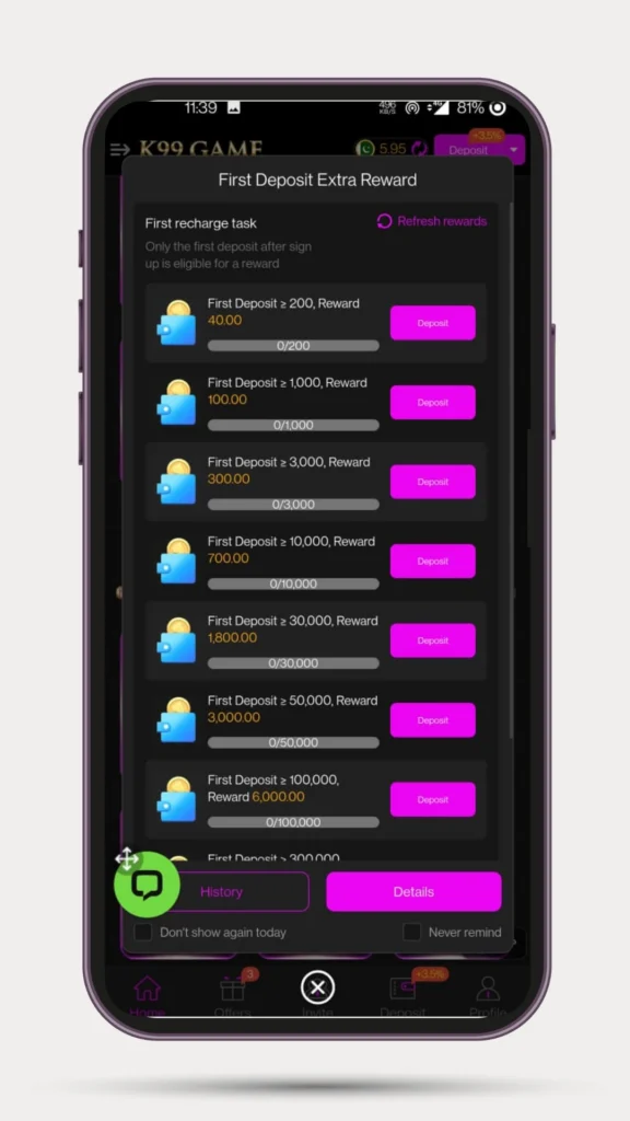The app is beginner-friendly, easy to navigate, and provides multiple ways to earn. Users can play fun games, complete simple challenges, and participate in daily or weekly promotions to increase their earnings. K99 Game also supports local payment methods like Easy Paisa and Jazz Cash, making withdrawals simple and fast.