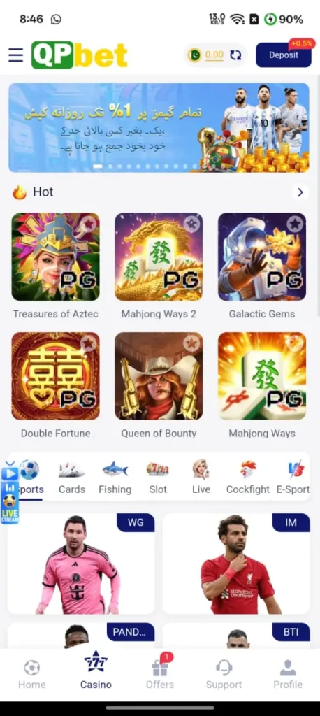 QP Bet Game features an intuitive interface that allows users to navigate the platform easily. Menus are organized clearly, and the layout adapts well to different screen sizes. The app runs smoothly even on low-end Android devices, ensuring consistent gameplay without delays or crashes. Players can quickly access games, wallets, and promotions, making the experience seamless.