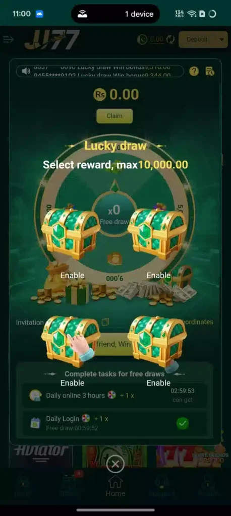 The platform also offers lucky draw or lottery-style games. Players can participate in draws for a chance to win cash prizes. These games are based on luck and provide excitement along with earning opportunities.